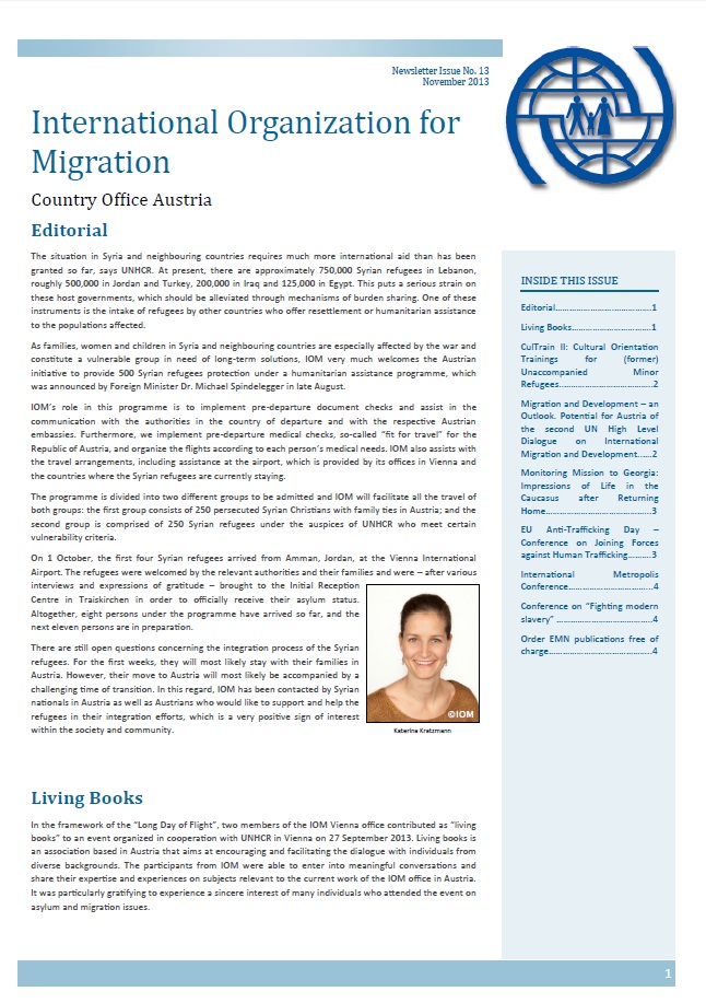 Das IOM Landesbüro für Österreich hat die dreizehnte Ausgabe ihres vierteljährlichen Newsletters veröffentlicht!