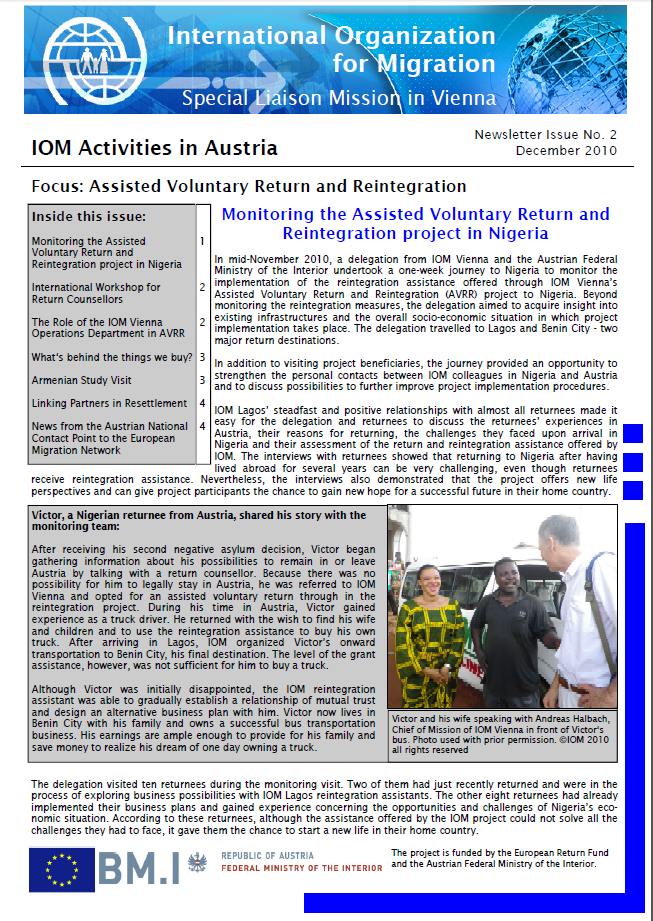 - Monitoring the Assisted Voluntary Return and Reintegration project in Nigeria
