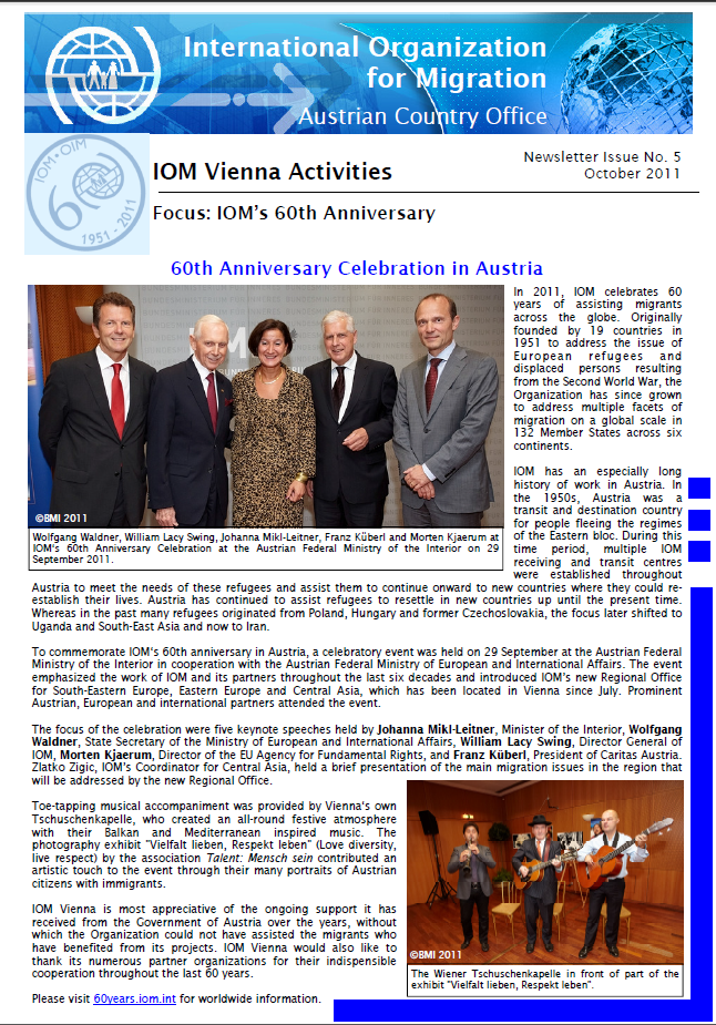 Das IOM Landesbüro für Österreich hat die fünfte Ausgabe ihres vierteljährlichen Newsletters veröffentlicht!